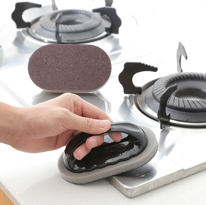 - Tên sản phẩm: Bàn chà nhám chà nồi tẩy gỉ sét bằng bọt biển có tay cầm, bàn chải rửa chén vệ sinh nhà bếp