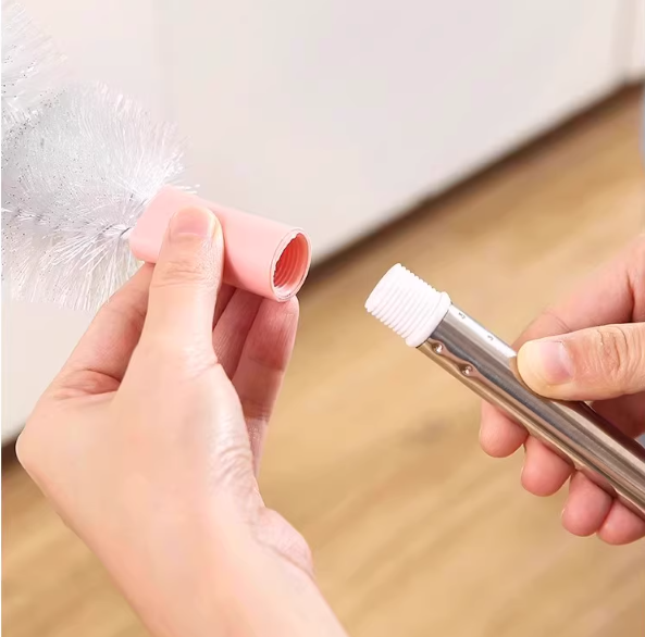 - Đưa chổi cọ vào miệng bình, nhẹ nhàng chà rửa các bề mặt bên trong