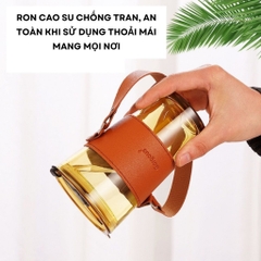 Ly thủy tinh có nắp đậy chống tràn. Cốc thủy tinh GorGous bọc da có quai xách kèm ống hút Dung tích 450ml