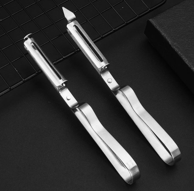 - Dao bào thép, dụng cụ gọt vỏ kim loại cao cấp hỗ trợ gọt vỏ trái cây và rau củ nhanh chóng, thích hợp cho nhà bếp gia đình và quán ăn.