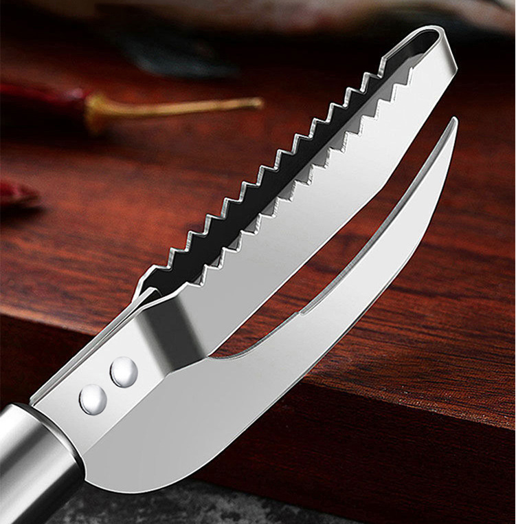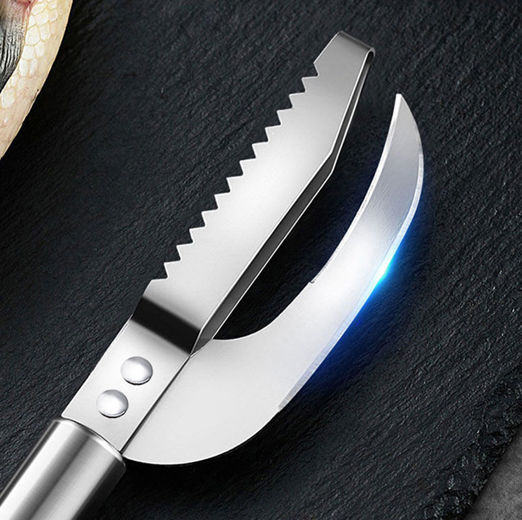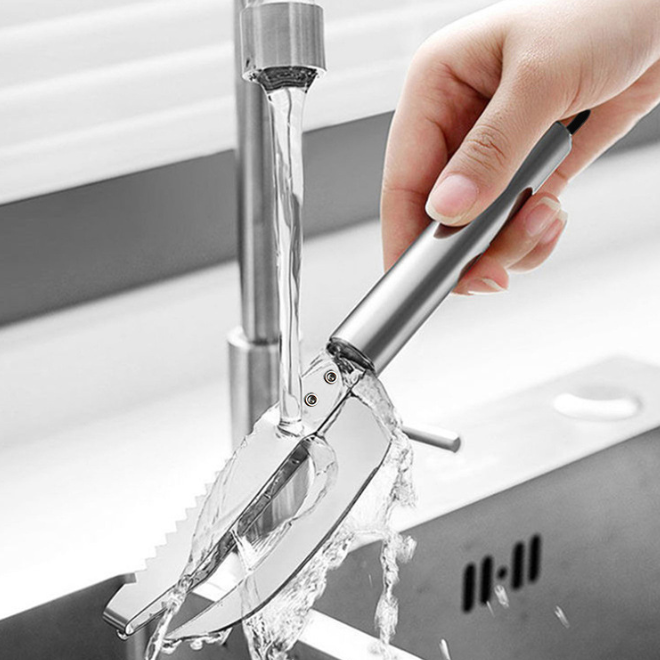 - Thiết kế lưỡi răng cưa cạo sạch vảy nhanh chóng mà không làm tổn hại lớp thịt cá bên trong