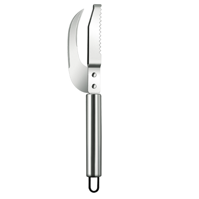 - Thiết kế: Đầu dao đa năng gồm lưỡi cắt, đầu cạo vảy, và phần gỡ nội tạng tích hợp tiện lợi