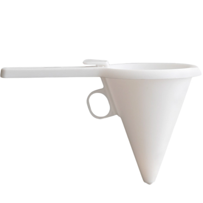 - Kích thước: Đường kính miệng phễu: 9.5cm, chiều dài cần gạt: 13.5cm, đường kính lỗ thoát: 0.9cm