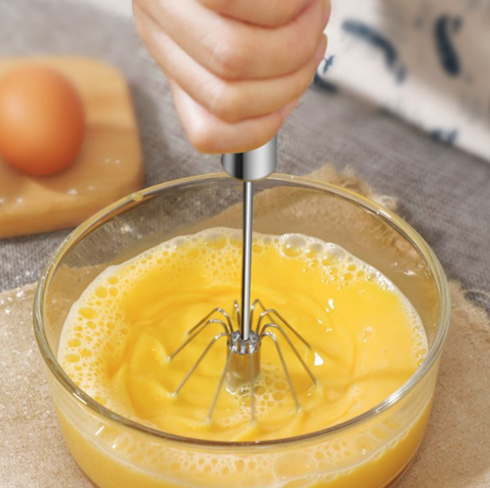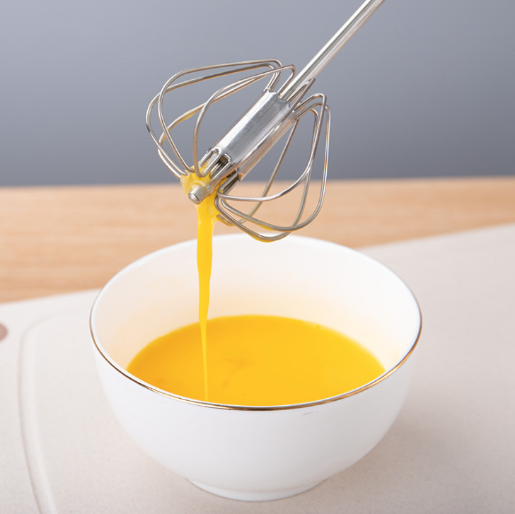 - Thiết kế dạng lò xo xoay tự động, dễ dàng đánh trứng hoặc khuấy bột mà không cần dùng điện