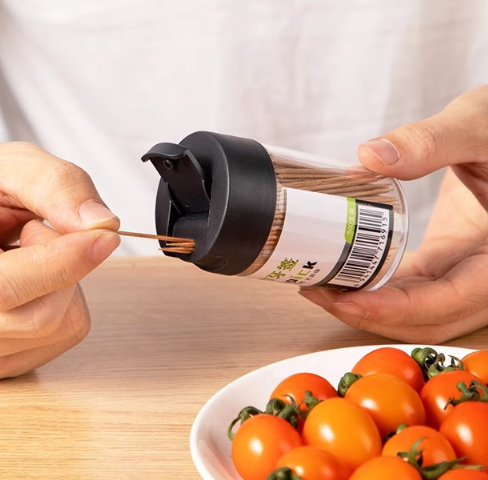 - Cơ chế lấy tăm dễ dàng, chỉ cần nghiêng nhẹ là tăm rơi ra, không cần chạm tay trực tiếp.