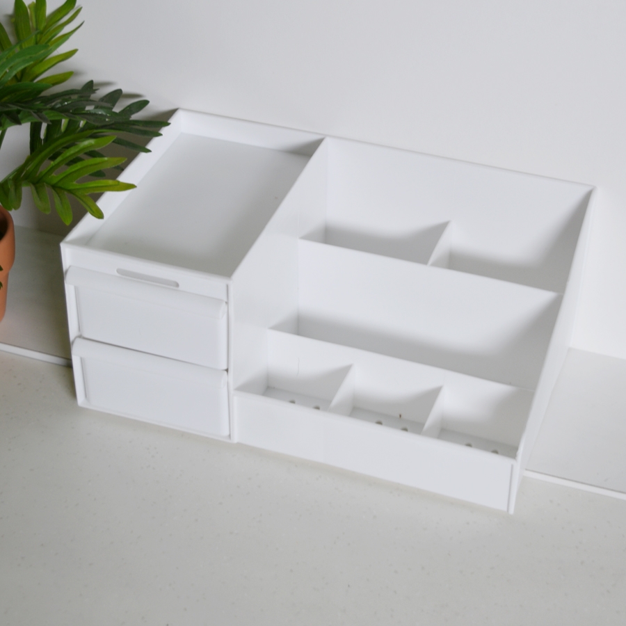 – Tên sản phẩm : Kệ đựng mỹ phẩm đa năng bằng nhựa 2 ngăn kéo nhiều ô