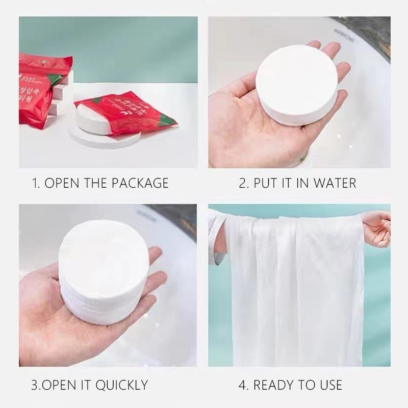 - Cách sử dụng: Chỉ cần xả khăn nén với vòi nước và tự động mở ra