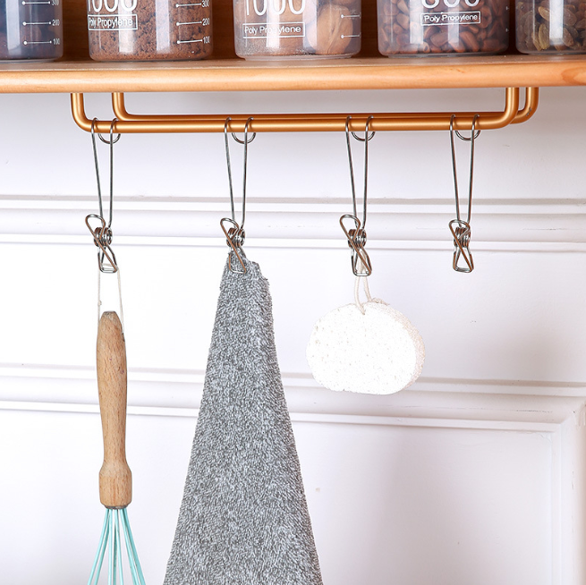 - Kẹp túi thực phẩm treo lên giá trong nhà bếp, tiết kiệm không gian