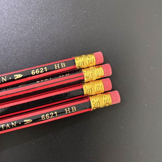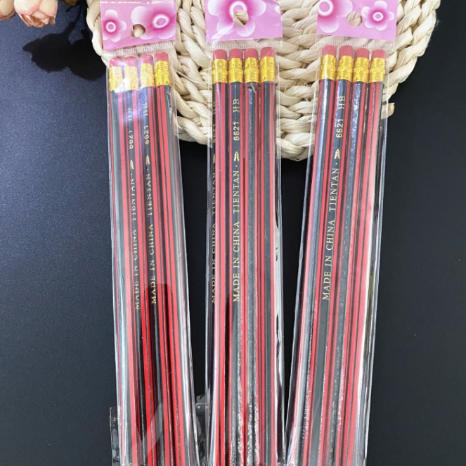 - Sét 4 cây bút chì sọc dọc màu đỏ và đen là sản phẩm học tập và văn phòng phẩm