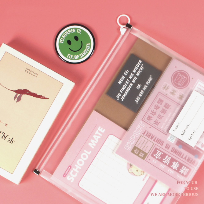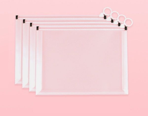 - Màu sắc: Trong suốt phối viền trắng, khóa kéo có vòng nhựa
